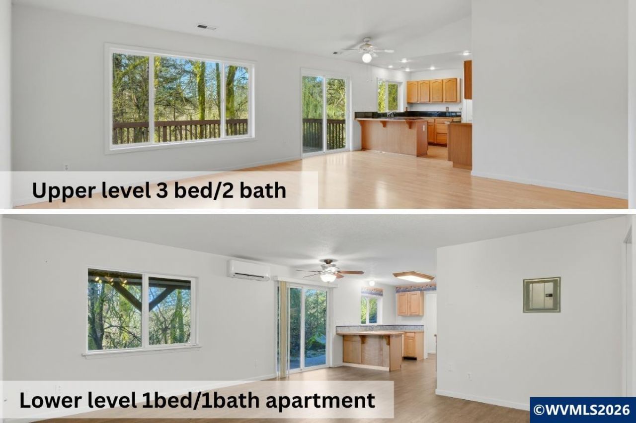 Positioned at the end of a very private drive and backing up to a creek this homeâ??s main level has vaulted ceilings and a wide open floor plan with three bedrooms and two bathrooms while the lower level is an ADU with an additional full kitchen, laundry room, bedroom, bathroom, living and flex spaces all on an oversized lot (0.72 acre) and in a desirable community with unlimited potential and no HOA. Positioned at the end of a very private drive and backing up to a creek this homeâ??s main level has vaulted ceilings and a wide open floor plan with three bedrooms and two bathrooms while the lower level is an ADU with an additional full kitchen, laundry room, bedroom, bathroom, living and flex spaces all on an oversized lot (0.72 acre) and in a desirable community with unlimited potential and no HOA. The main floorâ??s living space is vibrant with natural light, has an open kitchen, large pantry and a breakfast bar that sits right next to the slider which leads to a sprawling deck. The three bedrooms are positioned away from the living space with the primary suite being a thoughtful focal point of the home. It too has vaulted ceilings, an ensuite full bath, walk-in closet and a slider that leads to the deck with a sunken built-in hot tub and wonderful views. The other two main level bedrooms and full bathroom are across the hall, and all of the living spaces and bedrooms in the home are hard-surfaced (no carpet). You can access the ADU via the outside entrance through the slider below the deck or through the door in the foyer that leads downstairs. The ADU's wide open floor plan, large living space and bedroom all offer plenty of storage and the lower level is efficiently climate-controlled with a mini-split heat pump. The main HVAC system has been recently serviced with a clean bill of health and the roof was torn off and re-roofed in 2021. The town of Dayton continues to show promise with consistent improvements to downtown, new and established business creating a lively community, higher than average graduation rates at the high school and a number of planned investments to the city in the pipeline. This home truly is a blank canvas, ready to house multiple generations of people or to be utilized for its income earning potential. Schedule a showing to experience it in person.