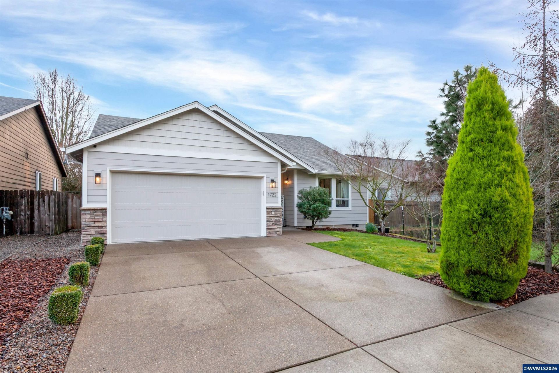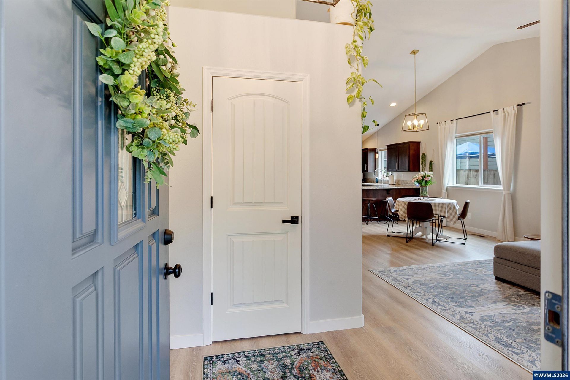 Thoughtfully updated and filled with natural light, this inviting one-level home offers a comfortable and functional layout designed for easy living. Tall ceilings and durable LVP flooring run throughout the home, while the open floor plan seamlessly connects the living room, dining area, and kitchen. The kitchen features stainless steel appliances and a built-in butcher block bar that adds warmth and functionality. The private primary suite includes a walk-in closet with built-ins and a full bathroom. While the two additional bedrooms and a second full bath provide flexibility for guests, hobbies, or a home office. A dedicated laundry room with shelving and direct access to the two-car garage adds everyday convenience.Outside, the backyard opens to a large green space, creating a peaceful extension of the property. A covered patio and garden beds offer space to relax, entertain, or grow your own seasonal favorites. Recent improvements including updated flooring, interior and exterior paint, fixtures, and a newer water heater enhance the homes comfort and move-in-ready appeal. Request a list of updates and improvements provided by the seller. This home is turn-key! To view alternate Virtual Tour, please go to 1