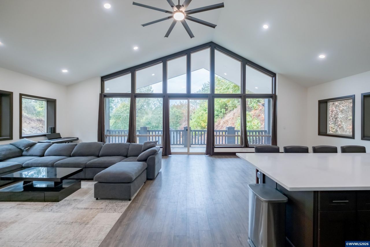 Modern style meets country charm in this 3 bed, 3 bath barndominium-style home just minutes from town. Built with high-efficiency ICF construction and finished with designer details throughout, this home offers both durability and luxury. The open-concept great room features soaring ceilings, floor-to-ceiling windows, and a seamless flow onto the expansive deck, creating the perfect setting for entertaining or quiet relaxation. The kitchen is a showstopper with quartz countertops, above-cabinet lighting, sleek fixtures, and modern finishes. A 3-car garage on the main level provides ample space for vehicles, tools, or hobbies. On both sides of the home, covered lean-tos offer flexible space for storage, outdoor living, or future customization. The property backs to a beautiful natural rock wall, offering both privacy and a dramatic backdrop that adds character to the landscape. Located across the road from the South Santiam River. A rare blend of lifestyle, efficiency, and modern comfortâ??come experience it!