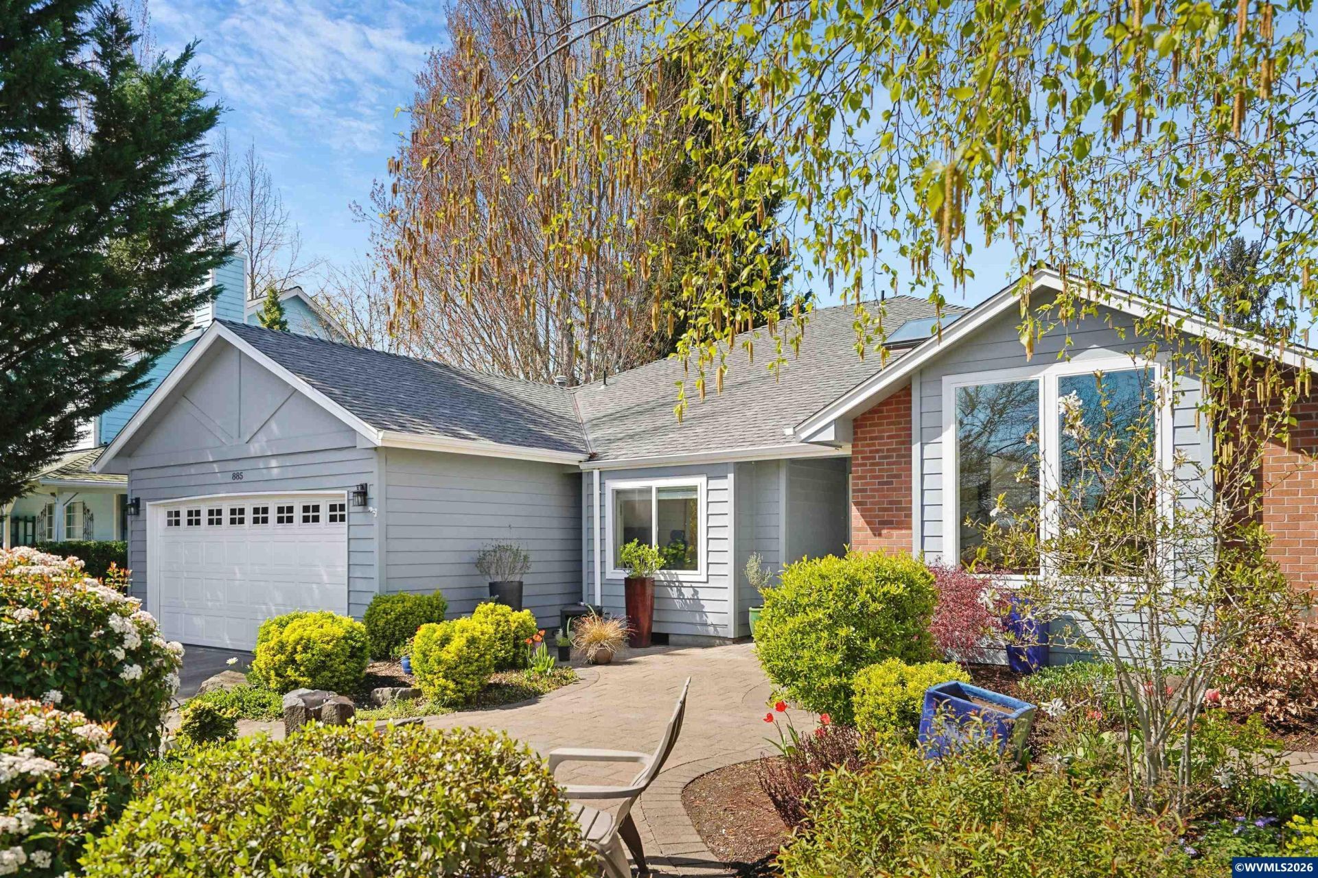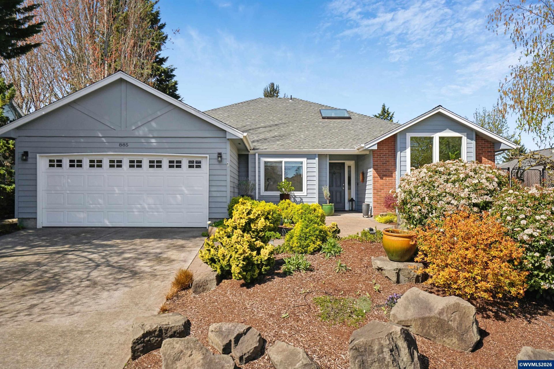 Tucked into a quiet North Keizer cul-de-sac, this well-maintained single-level home offers comfort, updates, and a thoughtfully designed, spacious layout. Vaulted ceilings and skylights bring in natural light, creating a bright, open feel in the front living and dining spaces. Refinished hardwood floors, new carpet, and updated surfaces add a clean, refreshed look. The den features a trendy refinished brick fireplace and built-in storage, adding both warmth and function while being open to the kitchen. Recent improvements include new windows, exterior paint, furnace, water heater, and fencing???providing peace of mind for the next owner.The primary suite is situated in the back of the house for added privacy and includes double door entry, L-shaped vanity with double sinks and built-in shelf storage, and an oversized closet. The third bedroom functions well as an office but is still practical with a built-in Murphy bed. The yard is a true highlight with lush landscaping and vibrant pops of color throughout. Flowering plants create a private, garden-like setting, while a welcoming fountain in the front adds charm and a sense of calm. Hardscaped pathways wrap around the home, making it easy to enjoy every corner of this outdoor space???an inviting oasis for relaxing or entertaining.Located close to schools, shopping, dining, and community events, with easy access to I-5 for commuting north or south. All on one level, this home offers flexibility, comfort, and long-term appeal in one of North Keizer???s most desirable locations. To view alternate Virtual Tour, please go to 1